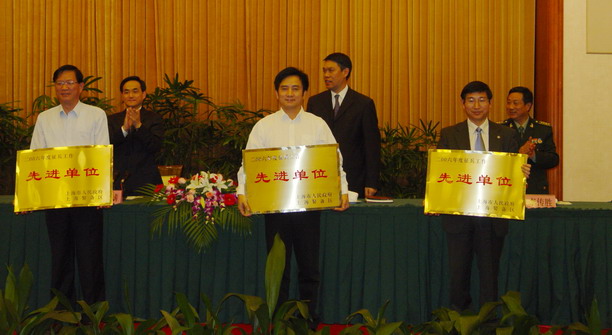 会议紧紧围绕中央军委会议精神,简要回顾了2006年区征兵工作的情况,并传达中央军委的主要精神,重点部署了今年征兵工作任务。会上,上海警备区副司令员宣读了中央军委2007年冬季征兵命令;会上还通报表彰了2006年度征兵工作先进单位,我校被评为上海市2006年度征兵工作先进单位,中共上海市委常委徐麟向我校副书记、副校长黄晞建颁发了奖牌。