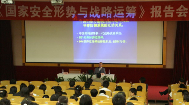 杨毅将军是我国国家安全战略专家,曾多次跟随国家领导人出访。杨将军通过具体实例分析了我国安全形势和目前的战略运筹,着重分析了中美战略关系、中日战略关系、朝鲜半岛问题及我国台湾问题。杨毅将军的讲座诙谐幽默而不乏威严,语言犀利而不失风度,观点鲜明而立场坚定。