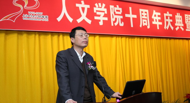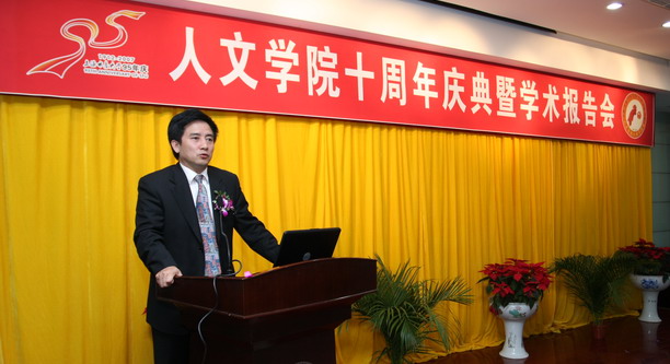 校党委副书记、副校长黄晞建代表学校热诚欢迎与会的嘉宾、校友,向人文学院师生表示热烈的祝贺,黄书记在讲话中充分肯定了人文学院所取得的成绩,并指出学校的发展就看人文学院的发展,人文学院要跨越式发展来支撑学校的新发展。我校兼职教授、上海市委研究室副主任李琪和我院学生实习基地南汇区人事局副局长王顺国的讲话都热烈祝贺人文学院成立10周年,表示将继续关心和支持人文学院的发展。校友代表和教师代表的发言,分别回忆和见证了人文学院的发展与变化,为学院所取得的成绩而高兴,同时表示要为学校和学院今后的发展继续尽一份自己的责任和力量。