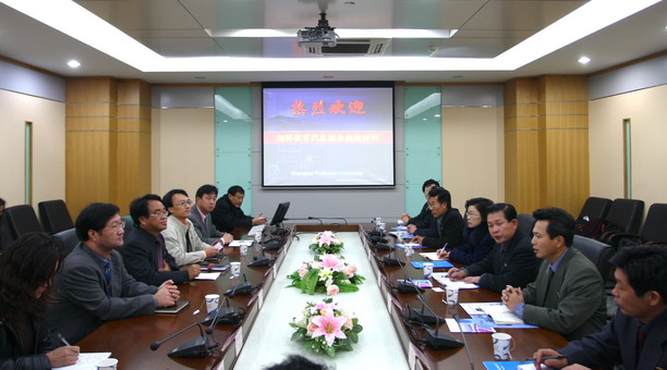 2007年12月7日,朝鲜民主主义人民共和国教育代表团一行11人来我校访问,黄硕琳副校长会见了朝鲜客人。会见中,黄硕琳副校长对代表团一行来访表示热烈欢迎,并就我校人才培养、学科设置、新校区建设等情况作了简要介绍。代表团一行对我校的接待表示感谢,对上海水产大学取得的成绩表示祝贺。