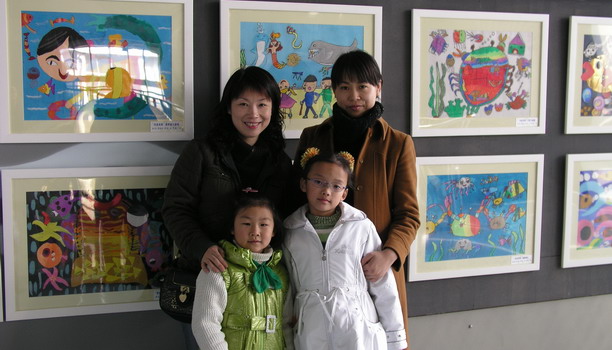 水族艺术展获奖学生代表、家长与指导教师合影