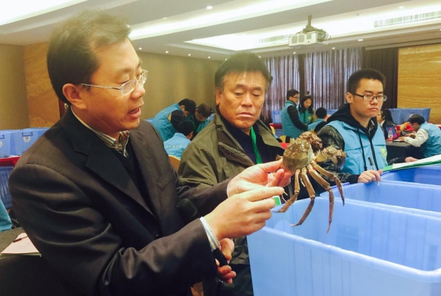 那么,怎样才算优胜者?据介绍,所有评比参数采用上海海洋大学开发的“全国河蟹大赛评比软件系统”,由计算机在综合参赛河蟹的体重、壳长、肥满度和个体差异后打分,从高到低排序来确定金蟹奖。此后,再在金蟹奖中由专家根据色泽、气味、口感等性状评选出最佳口感奖。为鼓励全国养蟹单位推广应用优质种源,全国河蟹大赛还设立了最佳种质奖。