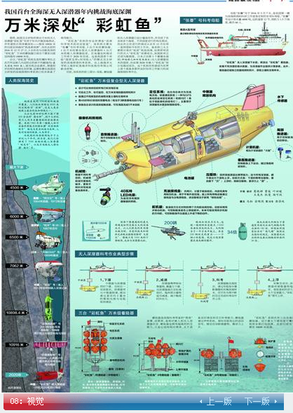 据悉,我国自主研发的首台万米级无人深潜器“彩虹鱼”号将于年内开展深海测试,并有望抵达地球最深处——海深10920米的马里亚纳海沟“挑战者深渊”。而在此前的2016年12月27日,3台形态与功能各异的“彩虹鱼”万米级着陆器已成功下潜至马里亚纳海沟10890米处。