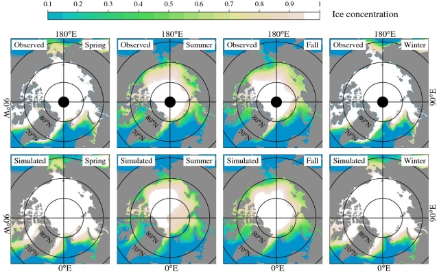 在首席科学家陈长胜教授、海洋科学学院高郭平教授的带领下,上海海洋大学国际海洋研究中心成功取得了多项突破性北极科学研究成果。他们利用海洋—海冰相耦合的数值模型对北极地区的海冰覆盖面积、海冰密集度、海冰速度和海冰厚度等反映海冰特征的重要参数进行模拟,与美国国家冰雪数据中心的各类海冰观测数据进行综合对比验证,成功再现北极海冰近40年时间和空间的变化,捕捉到了海冰变化异常年份的分布特征,并详细分析了海冰对于包括热通量、长短波辐射,风应力等气象因素变化的响应和敏感性。同时,他们通过计算北极地区海水出入口的体积通量,揭示了加拿大北极群岛在北冰洋环流中所扮演的重要角色,并成功总结了之前海洋学界争议较多的影响北极海水流出北冰洋的主要动力机制,得出加拿大北极群岛上游与下游水位梯度差是决定北冰洋海水通过地形结构错综复杂的群岛流出北极的主要因素,而北极区域的海表面大气压分布则是影响水位梯度差的关键。我校年青教师张瑜博士,作为中心的主要科学家,以第一作者的身份,将此两项研究成果撰写成论文,已发表在物理海洋学顶级期刊《Journal of Geophysical Research-Oceans》上。