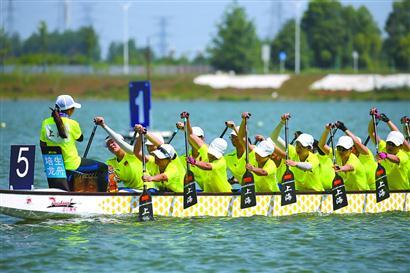 上海海洋大学龙舟队在比赛中。 王佳斌 摄