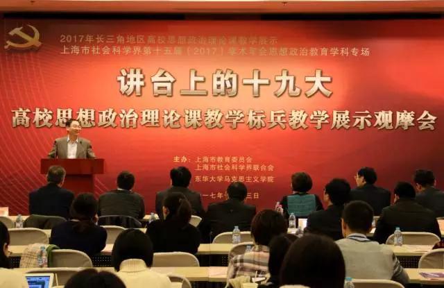 ▲“讲台上的十九大”高校思想政治理论课教学标兵教学展示观摩会在东华大学举行。
