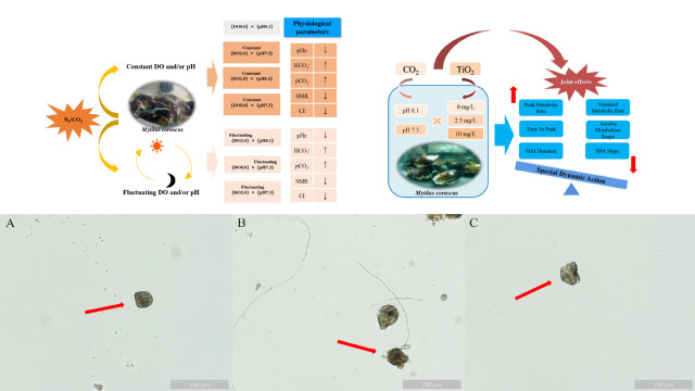 在缺氧和酸化复合胁迫研究中,考虑到真实海洋环境中的低氧和酸化的昼夜节律性的特点,团队首次评估了在节律性和持续海洋低氧和酸化的情况下,海洋双壳类动物对环境胁迫的适应性。研究发现,持续性的海洋酸化和低氧使得海洋双壳贝类处于更加的危险境况之中。尽管间歇性应激可以在一定程度上减轻负面影响,但如果贝类无法获得足够能量供应,未来酸化和缺氧将影响贝类种群的稳定性。