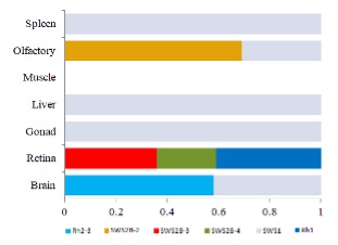 视觉重复基因SWS2B的组织分化表达