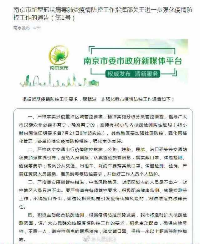 此外,据南京发布最新通报,2021年7月20日上午,江宁区新冠肺炎疫情防控指挥部接禄口国际机场防疫专班报告,在禄口国际机场工作人员定期核酸检测样品中,有检测结果呈阳性,涉及工作人员主要是参与机场航班保障人员,包括地服、保洁等岗位人员。接报后,南京市第一时间组织力量对机场相关人员进行集中隔离,并重新采样检测。截至20日下午6时,已出结果中检测阳性9份,其他样品正在检测中。