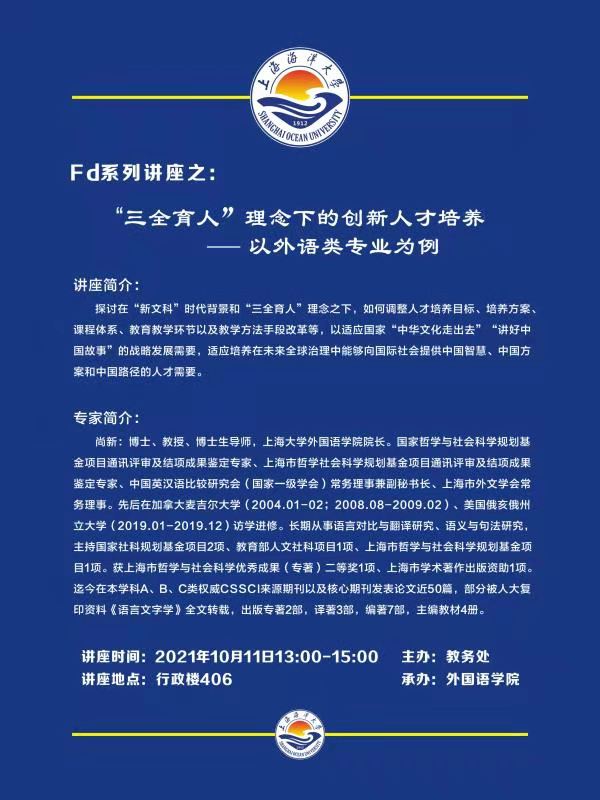 Copyright©2014 上海海洋大学, All Rights Reserved 沪ICP备15032645号-1 沪举报中心 举报电话: 61900238 临港新城校区:上海市浦东新区沪城环路999号; 军工路校区:上海市杨浦区军工路318号