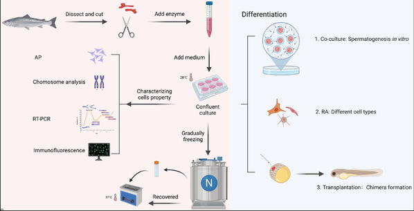 马口鱼精原干细胞系的诱导分化为体细胞和精子