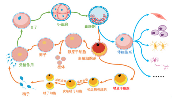 动物生殖细胞是唯一携带遗传信息,维持物种延续。原始生殖细胞在生殖腺形成之前,已在胚胎的囊胚期特定位置形成,随后迁移到原始生殖腺,分化为卵原干细胞和精原干细胞。精原干细胞通过减数分裂产生精子。体外重建精子发生微环境,精原干细胞经性腺体细胞诱导亦可产生精子。新加坡国立大学洪云汉教授,2004年开创了鱼类无滋养层干细胞培养技术,建立模式动物青鳉长期稳定培养的精原干细胞并产生精子。随后,世界众多实验室开展此项技术研究,期望应用于其他濒危鱼类或重要经济鱼类,然而仅能获得培养时间不超过1个月的短期培养精原干细胞。