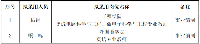 根据《上海海洋大学公开招聘事业编制人员管理办法(试行)》(沪海洋人〔2018〕11号)等文件精神,按照学校招聘计划,经综合考察、学校研究审定,现将近期拟录用人员名单予以公示。公示期为2023年5月23日~2023年5月30日。如有异议,请于2023年5月30日17:00前向人事处反馈。联系人:蒋朝鹏老师,联系电话:021-61900263,电子信箱:hr@shou.edu.cn。