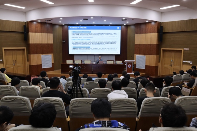 专题讲座在一片热烈的掌声中拉开序幕,胡董事长将焦点牢牢锁定在具身智能与人形机器人等前沿领域,为同学们全面展现了全球创新的最新态势,通过一个个生动的技术实践案例,直观地展现了具身智能领域所取得的重大技术突破。他强调,具身智能作为推动人工智能发展的下一波浪潮,融合了自然语言处理、认知科学、计算机图形学、材料科学及物理学等多个学科,充分体现了跨智能科学领域的广泛合作与创新。