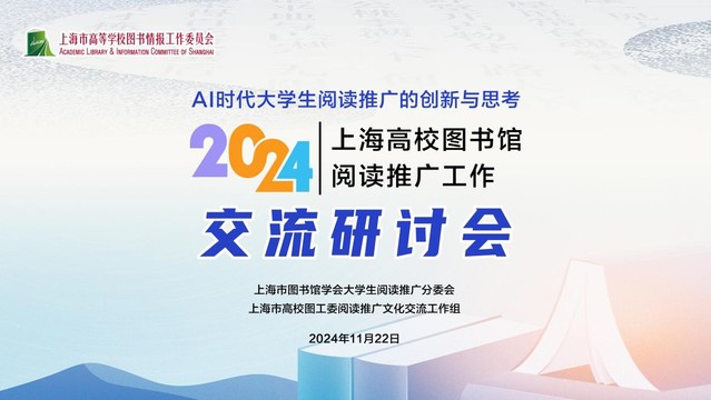 11月22日,由上海市高等学校图书情报工作委员会阅读推广文化交流工作组与上海市图书馆学会阅读推广委员会大学生阅读推广分委会联合主办,上海海洋大学图书馆承办的“2024年上海高校图书馆阅读推广工作交流研讨会”在上海海洋大学图文信息中心成功举行。本次研讨会以“AI时代大学生阅读推广的创新与思考”为主题,来自上海市27所高校的馆长、书记以及图书馆界六十多位阅读推广人相聚海大,围绕大学生阅读推广的新路径与新模式进行深入探讨。