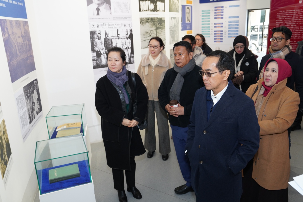 会前,印度尼西亚哈山努丁大学校长一行参观了学校校史馆。