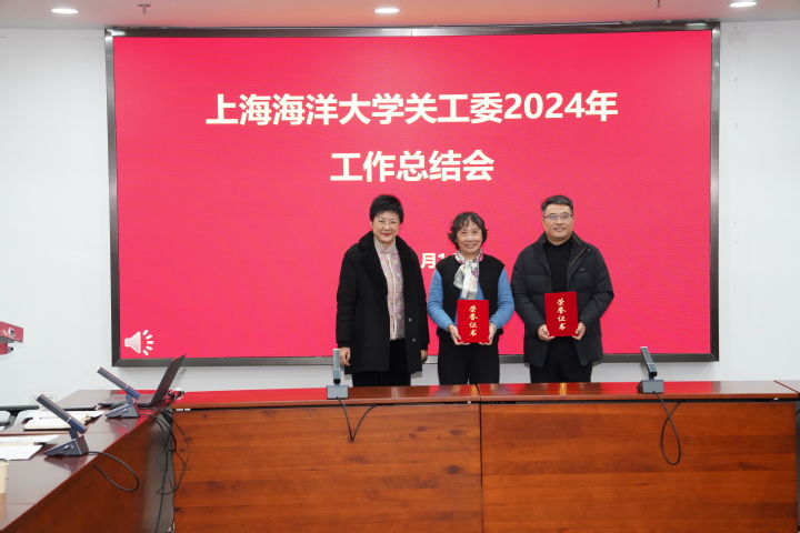 2025年1月14日上午,上海海洋大学召开2024年关工委工作总结暨表彰会。校党委副书记、关工委副主任潘燕,校关工委常务副主任叶骏,校关工委成员、各二级关工委分会负责人、各二级关工委秘书及师生代表参会。会议由校关工委常务副秘书长汪之和主持。