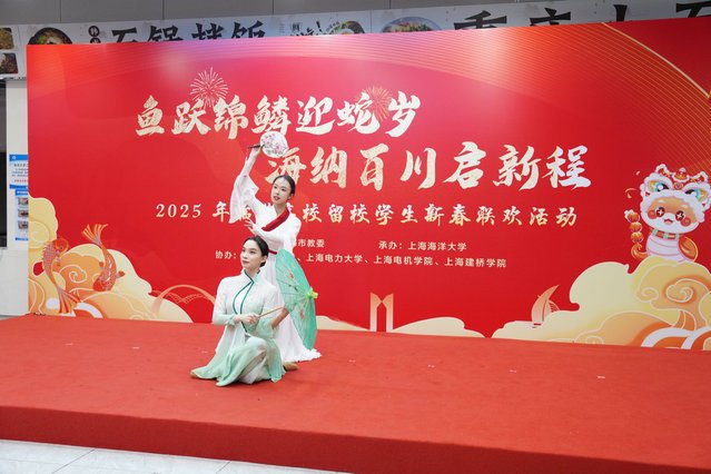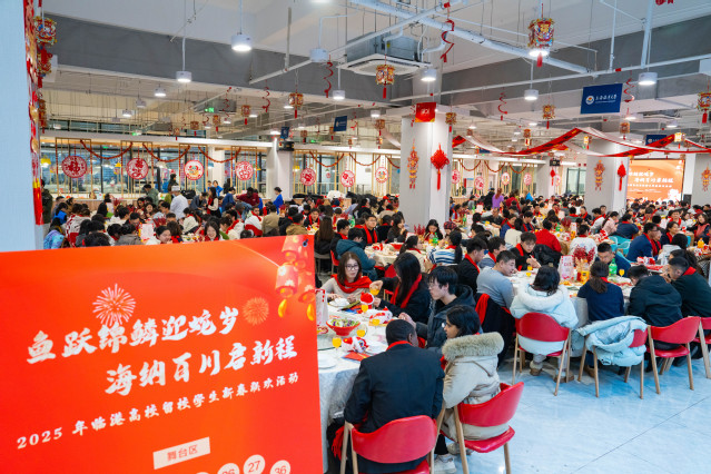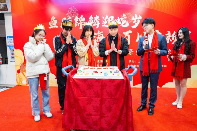 开蚌取珍珠、书写春联、漆扇制作......1月21日晚,上海海洋大学第二餐厅二楼被装点得红红火火、彩灯闪烁,“鱼跃锦鳞迎蛇岁 海纳百川启新程”2025年临港高校留校学生新春联欢活动在这里举行。上海海洋大学、上海海事大学、上海电力大学、上海电机学院、上海建桥学院师生代表欢聚一堂,共迎蛇年新春佳节。上海市教卫工作党委副书记、市教委副主任顾红亮,上海市教委学生处一级调研员赵靖茹,临港五校留校师生代表400余人齐聚一堂,共同开启这场新春盛宴。