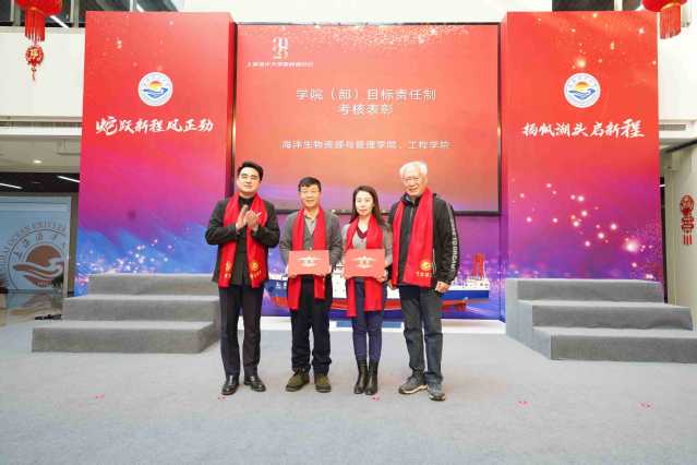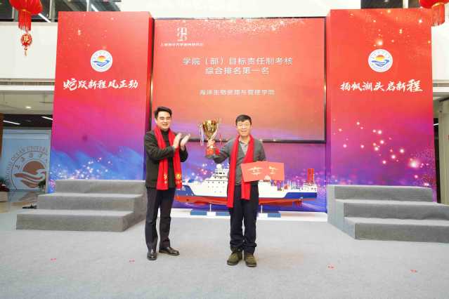 会上进行了2024年目标责任制考核表彰。海洋生物资源与管理学院、工程学院获2024年学院目标责任制考核第一名,海洋生物资源与管理学院捧得“金鸥”杯;党校办、党委组织部、党委宣传部、教务处、科学技术处、财务处、后勤与基建管理处获机关处室目标责任制考核第一名;期刊中心、船舶管理中心获直属部门目标责任制考核第一名。全体校领导和离退休老领导共同为获奖单位颁奖。