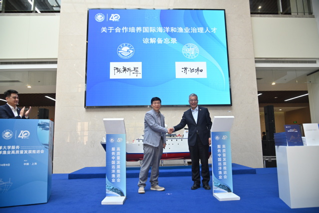 推进会上,上海海洋大学还与复旦大学签订“渔业外交官”培养协议。苏长和表示,“我国在国际海洋与渔业治理领域面临着严峻挑战,高层次、复合型专业人才短缺。双方将通过系列项目,本硕博贯通、跨校合作联合培养高层次专业人才,精心打造国际海洋与渔业治理人才培养专项计划,为国家输送高层次涉外海洋与渔业治理人才。”