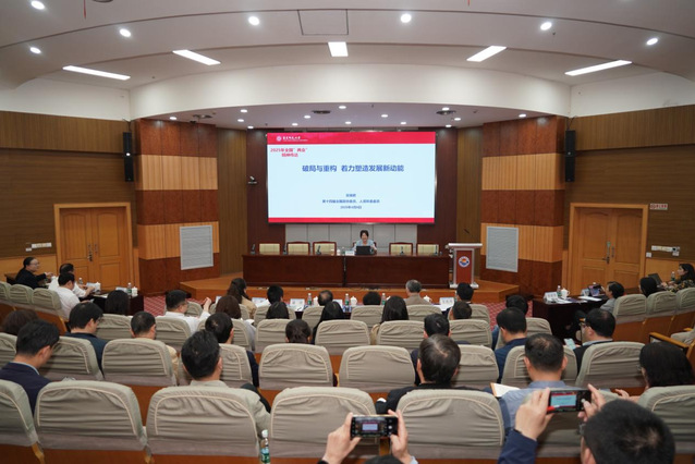 吴瑞君以《破局与重构 着力塑造发展新动能》为主题,从“两会基本概况”“参会心得体会”和“落实思考建议”三个维度深入浅出、活泼生动地描绘了2025年全国两会的全景图。吴瑞君既结合研究专长,介绍了全国两会中的人口和社会学以及教育改革等热点问题,也结合学校发展,从环境资源界别委员的身份重点介绍了推动海洋经济高质量发展、加快发展海洋新质生产力等全国两会中落实海洋强国战略的新举措,同时从服务国家和地方发展战略、临港新片区新一轮发展战略等方面给出学校落实2025年全国两会精神的建议。