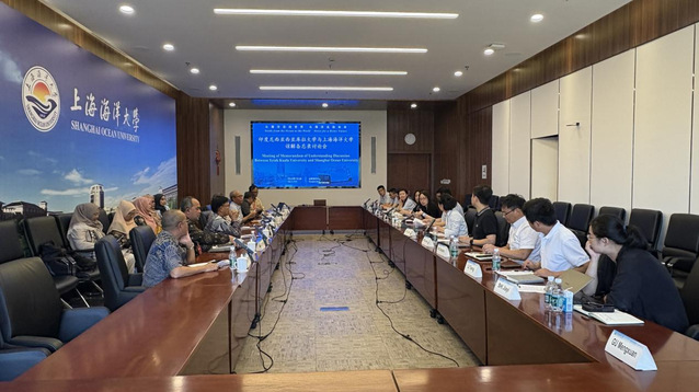 马尔万感谢上海海洋大学的热情接待,提出未来两校在渔业、水产养殖、海洋、工程等领域开展合作的意向,期待双方共建海洋相关领域的人才培养与科研国际合作平台。