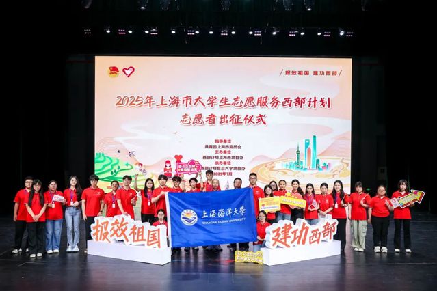 7月9日下午,“青春为中国式现代化挺膺担当”——2025年上海市大学生志愿服务西部计划志愿者出征仪式在复旦大学举行。今年,上海海洋大学共有30名同学通过层层选拔,成功入选2025年西部计划,是上海市入选最多高校之一。他们即将启程,奔赴西藏、云南、新疆生产建设兵团等祖国最需要的地方,开展为期1至3年的志愿服务工作,将青春热血挥洒在西部广袤的土地上。
