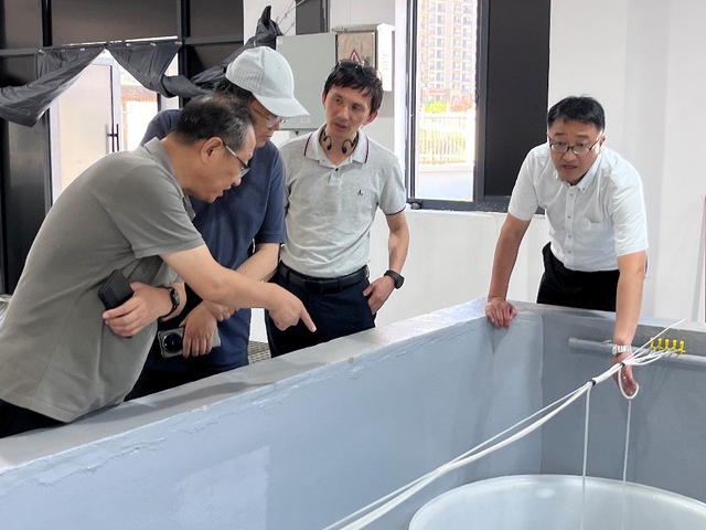 8月22日,杨金龙教授带领服务团首站抵达嵊泗厚壳贻贝种质资源场,该基地是上海海洋大学与嵊泗当地深化产学研融合的重要平台,万荣校长、高忠文理事长细致检视厚壳贻贝育苗设施运行状态与实验环境控制细节,重点了解厚壳贻贝三倍体育种技术的研发进度、应用瓶颈及产业化前景。据了解,为抢抓厚壳贻贝育苗 “黄金窗口期”,在嵊泗种质资源场育苗池交付前,杨金龙教授团队已提前布局在福建漳浦育苗基地启动预研,成功培育出形态完整、活力良好的三倍体稚贝;通过嵊泗基地暂养后,现已顺利完成海区包苗养殖关键环节。这一系列成果不仅验证了三倍体苗种的环境适应性,更标志着厚壳贻贝三倍体苗种规模化繁育迈出关键一步,为产业端应用筑牢技术基础。