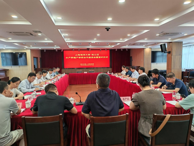 8月29日,上海海洋大学·松江区水产养殖产学研合作座谈会暨签约仪式在松江区农业服务中心举行。上海海洋大学副校长罗轶,松江区副区长叶文娣,上海海洋大学水产与生命学院院长黄旭雄,松江区农业农村委党组书记、主任黄建春出席会议。上海海洋大学专家团队代表、松江区科委、科创办、农业农村委相关科室及相关企业代表参加了此次会议。