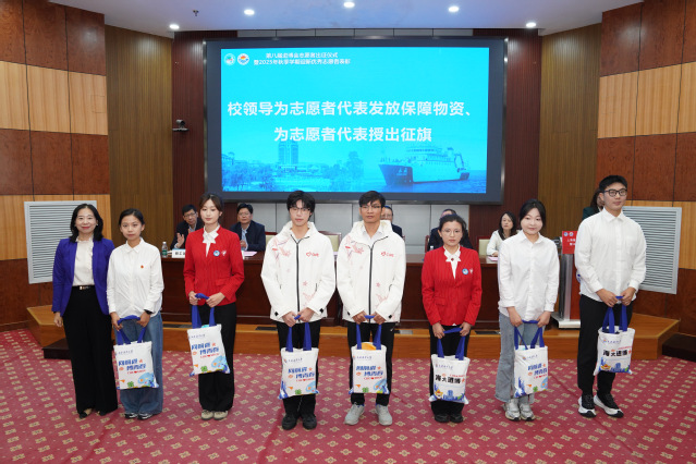 金秋十月,硕果盈枝。10月22日,上海海洋大学第八届中国国际进口博览会志愿者出征仪式暨2025年秋季学期迎新优秀志愿者表彰大会在行政楼137室召开。校党委副书记、副校长夏雅敏出席,校党委常委、宣传部部长陈江华,以及党委组织部、教务处、党委学工部、研工部、各学院党委副书记、团委书记与全体志愿者参加本次仪式,仪式由校团委书记陆烨主持。