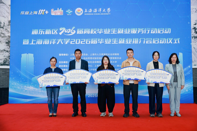 为深入贯彻落实党中央、国务院对高校毕业生就业创业工作的决策部署,促进毕业生高质量充分就业,10月23日,浦东新区2026届高校毕业生就业服务行动启动暨上海海洋大学2026届毕业生就业推介会启动仪式在上海海洋大学图文信息中心成功举办。上海海洋大学校长胡炜莅临推介活动现场与企业亲切交流。上海市就业促进中心副主任赵晓云、上海市就业促进中心职介处处长王晓亮、浦东新区人力资源和社会保障局副局长陈大可、浦东新区就业促进中心主任殷雅菲、浦东新区就业促进中心副主任潘峰、上海海洋大学党委副书记、副校长夏雅敏,以及临港高校就业工作负责人、14家用人单位和公共服务单位负责人出席启动仪式,上海海洋大学学生处处长周辉主持活动。
