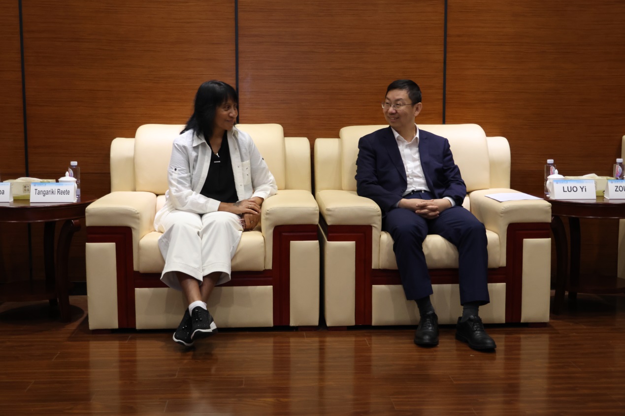 参观结束后,双方进行座谈交流。罗轶副校长对嘉宾到访表示欢迎,结合学校海洋领域学科优势,介绍我校与太平洋岛国的国际合作基础与发展潜力。里特部长高度肯定学校科研教学成果,就深化相关领域合作交换意见,并看望了正在海洋生物资源与管理学院攻读硕士的基里巴斯留学生洛棠(Atanimango Karotu)。