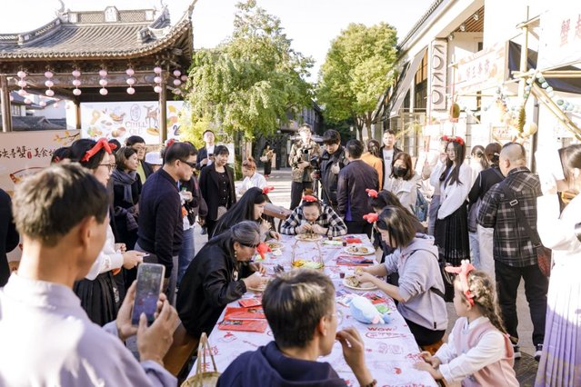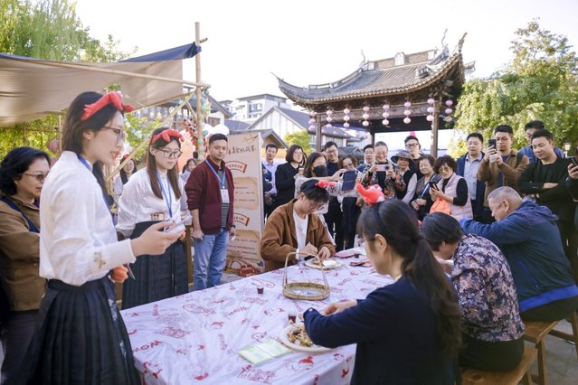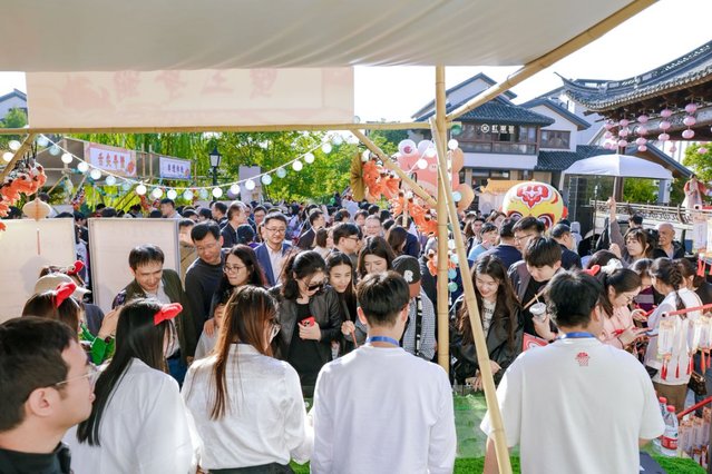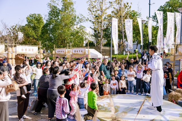 11月12日至16日,上海海洋大学蟹文化节开启青浦行,这是蟹文化节首次走进区县。本次活动分“蟹”产业、“蟹”文化、“蟹”经济、“蟹”休闲四大板块,内容丰富、形式多样,涵盖学术、文化、交流、竞技、娱乐、互动等多个方面,吸引了众多市民前来打卡。每一个摊位都挤满了人,市民们积极参与“蟹灯谜”“蟹壳作画”等互动游戏。在优质河蟹的展示区域,一些河蟹在上午就已售罄,出现了“一蟹难求”的场面。