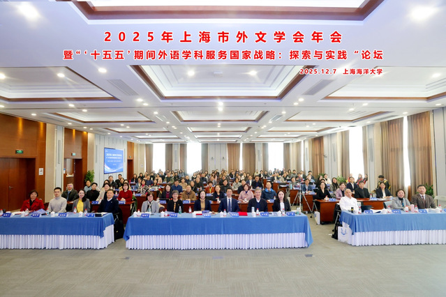 12月7日,上海市外文学会年会在上海海洋大学举办。年会主题聚焦“‘十五五’期间外语学科服务国家战略:探索与实践”。近两百位专家学者围绕外语学科协同创新、国际传播能力建设、全球胜任力培养及人工智能赋能教学等议题展开深入研讨。