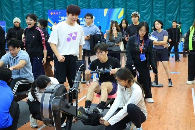 同日,我校激浪赛艇社在“梦想杯”陆上划船器专项赛中奋勇拼搏,由刘鑫(水产与生命学院)、徐毅伟(食品学院)、邢芮畅(外国语学院)等同学组成的队伍,在男女混合团体接力赛及男子个人500米计时赛中均勇夺亚军。