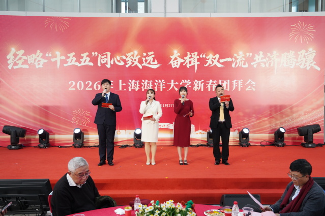 “骏马蹄开锦绣路,扬帆奋进新征程”。1月27日下午,上海海洋大学2026年新春团拜会在新落成的水生生物科研楼6楼大厅举行。校长胡炜发表新春致辞,校党委副书记潘燕主持团拜会。