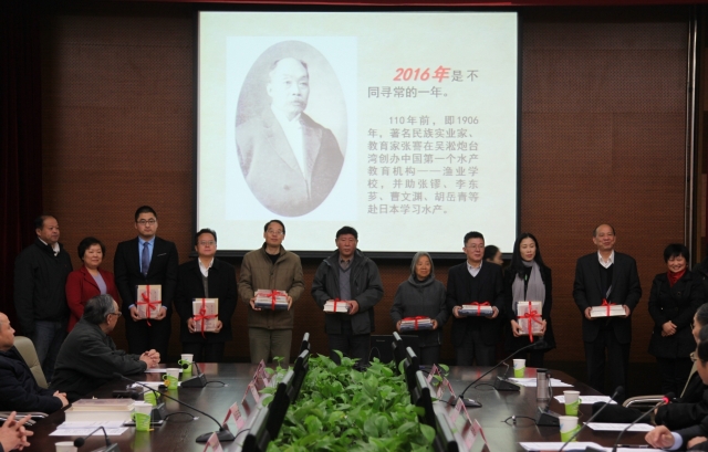 Also present at the event were Professors Wang Yaogeng and Song Jiakun from Shanghai Ocean University; Professor Zhao Shenglong from Zhejiang Ocean University; Professor Zhong Junsheng from the Foreign Affairs Office of Shanghai Ocean University; Doctor Song Xiaojing (enrolled in 2014) from the College of Fisheries and Life Science and Wu Zejian from Yuanding College; and Hou Tianyuan, niece of Hou Chaohai. They cherished the memory of the contributions of the three masters to our fishery science education cause and their noble moral sentiments and teaching ethics based on their personal perspectives and experiences.