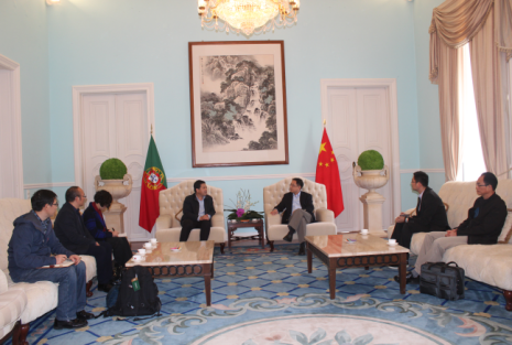 In the afternoon of December 12, Chinese Ambassador to Portugal Cai Run received the delegation of Shanghai Ocean University. Party Secretary Wu introduced to Ambassador Cai the purpose of the visit and vision on promoting China-Portugal inter-university exchange. Ambassador Cai Run introduced the sound cooperation and progress in education, economy and trade, science and technology between China and Portugal and pointed out that under the context of developing ocean economy and blue economy as proposed by the Ministry of Agriculture and Sea of Portugal, both China and Portugal have bright prospectson in-depth cooperation in respect of maritime science and technology, maritime development, and maritime infrastructure development. He also hoped Shanghai Ocean University would play a more significant role in the cooperation of maritime academic education between the two countries. He said he would continue to give strong support for maritime academic and technological exchange and cooperation between China and Portugal.