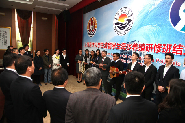 Cheng gave a speech at the commencement ceremony. In the speech, he warmly congratulated the ten students from French Polynesia for their successful graduation; appreciated the government of French Polynesia, the Chinese People's Association for Friendship with Foreign Countries, and Tianrui Investment (Group) Management Co., Ltd. for their contributions to the successful completion of the seminar; fully affirmed the students’ learning outcome, cultural experience and practice, and their appreciation of China’s educational achievements; and also sincerely thanked the faculties undertaking this training task. He also pointed out that the successful gradution from the mariculture seminar of the overseas students from French Polynesia would further expand the scope of SHOU’s international exchange, and that, as a new measure taken by SHOU in responding to the “Belt and Road Initiative” launched by Chinese government, it would be of positive significance to promoting and improving the overseas student education level in SHOU.