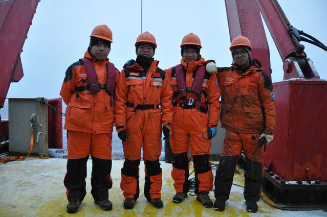 Professor Zhu Guoping (second from right) taking part in China’s 35th Antarctic scientific investigation