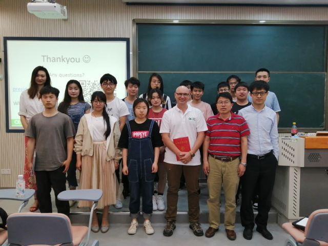Based on Aquarium Sciences, Professor Shane Willis introduced the development status of the global aquarium industry, and analyzed the challenges faced by the industry in terms of development trend, animal welfare, bio-safety, bio-invasion, sustainable development, and so forth and related countermeasures. The lecture, featured of illustrated contents and abundant information, deepened students’ understanding of the major and the industry from a global vision. At the end of the lecture, Shane Willis engaged in lively discussions and exchanges with teachers and students.