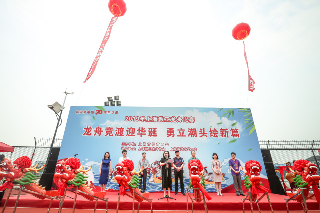 After two rounds of intense race, Songjiang District Education Bureau, Shanghai Maritime University, and Oriental Land won the first, second, and third places of 2019 Shanghai Faculty Dragon Boat Racing Competition, respectively.