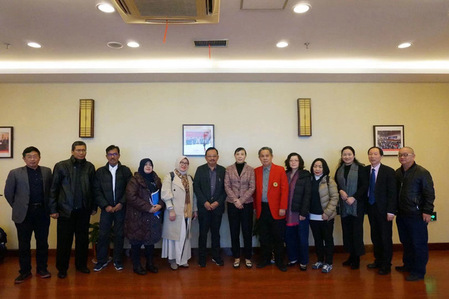 On December 24, a seven-person delegation, led by Wardihan Sinrang, President of South Sulawesi Cooperatives and composed of experts and scholars from Hasanuddin University, paid a visit to SHOU, and was warmly received by Guo Aiping, Chief Accountant of SHOU. Present at the meeting were Tan Hongxin, Dean of the College of Fisheries and Life Science; Xie Jing, Dean of the College of Food Science and Technology; Li Huihua, Deputy Director of the Office of Science and Technology; Zhu Zhanghua, Deputy Director of the Foreign Affairs Office; Wu Jionghua, General Manager of the technology transfer company and the university science park, and so forth.