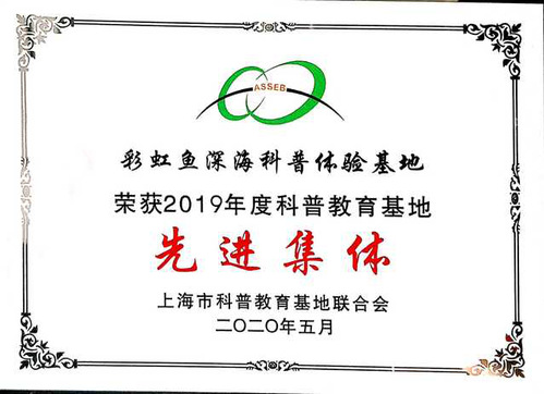 Recently, the Shanghai Federation of Popular Science Education Bases has announced the list of “2019 Advanced Collective of Shanghai Popular Science Education Bases”. The Rainbowfish Deep-sea Science Popularization and Experience Base of the College of Marine Science of SHOU has been on the list.