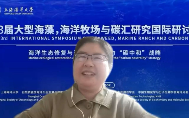 Climate change is a major global challenge today. In this context, tackling climate change is an international consensus, but also a historical opportunity for China to effectively practice the concept of “a community with a shared future for mankind” and actively participate in global governance. To better implement the national strategy of “carbon dioxide peaking and carbon neutrality”, respond to climate change, and ensure the source power of sustainable development and to vigorously promote marine ecological restoration, marine ranching construction, and other strategies for the sake of negative marine emissions, SHOU, together with units such as the Key Laboratory of Marine Ecological Monitoring and Restoration Technologies under the Ministry of Natural Resources, Jiangsu Ocean University, Shanghai Society of Oceanology and Limnology, and the Division of Ocean Biochemistry and Molecular Biology, CSBMB, held the “Third International Symposium on Seaweed, Marine Ranch, and Carbon Sink” online on November 12. Experts, scholars, and graduate students from countries such as China, Australia, and South Korea, as well as regions such as Hong Kong of China, attended the symposium online. Jiang Min, Vice President of SHOU, delivered a speech on behalf of the sponsor. The symposium was presided over by Professor He Peimin of SHOU.