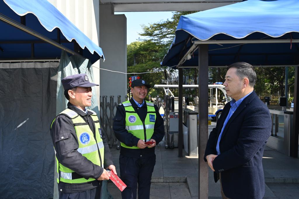 2025年1月29日,我校党委委员、副校长杨云奇带队慰问春节期间坚守工作岗位的工作人员,为他们送上新春祝福,相关值班人员陪同慰问。