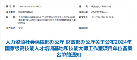 近日,人力资源社会保障部办公厅与财政部办公厅联合公布了2024年国家级高技能人才培训基地和技能大师工作室项目单位备案名单。全国共有27所高职院校脱颖而出,其中17所高职院校入选国家级高技能人才培训基地项目,我校成功跻身其中,成为广东省第二家以高职院校为建设单位的国家级高技能人才培训基地,并将获得中央财政专项建设资金支持。