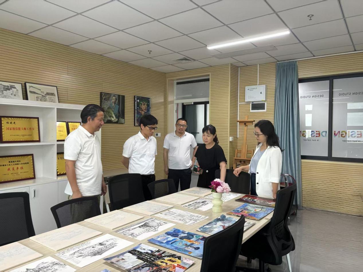 调研伊始,蔡东宝副书记参观了学院智能潮创产品设计基地和杨晓光大师工作室成果转化展,深入了解学院在产教融合领域的创新探索与文化创意成果转化实践。