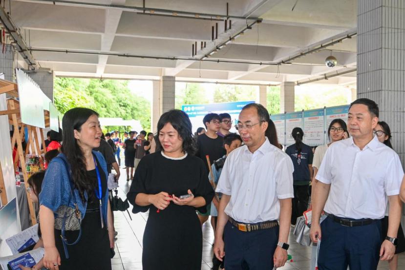 为贯彻落实“百日冲刺”行动方案,进一步推进2025届毕业生就业工作,同时引导2026届毕业生提前安排实习计划,6月26日上午,我校举办2025届毕业生招聘会暨2026届毕业生实习双选会。我校党委副书记、校长贺定修,党委委员、副校长杨云奇,东莞市人力资源和社会保障局党组成员、副局长汤丽华,东莞市妇联党组成员、副主席张琦等领导到现场指导工作。