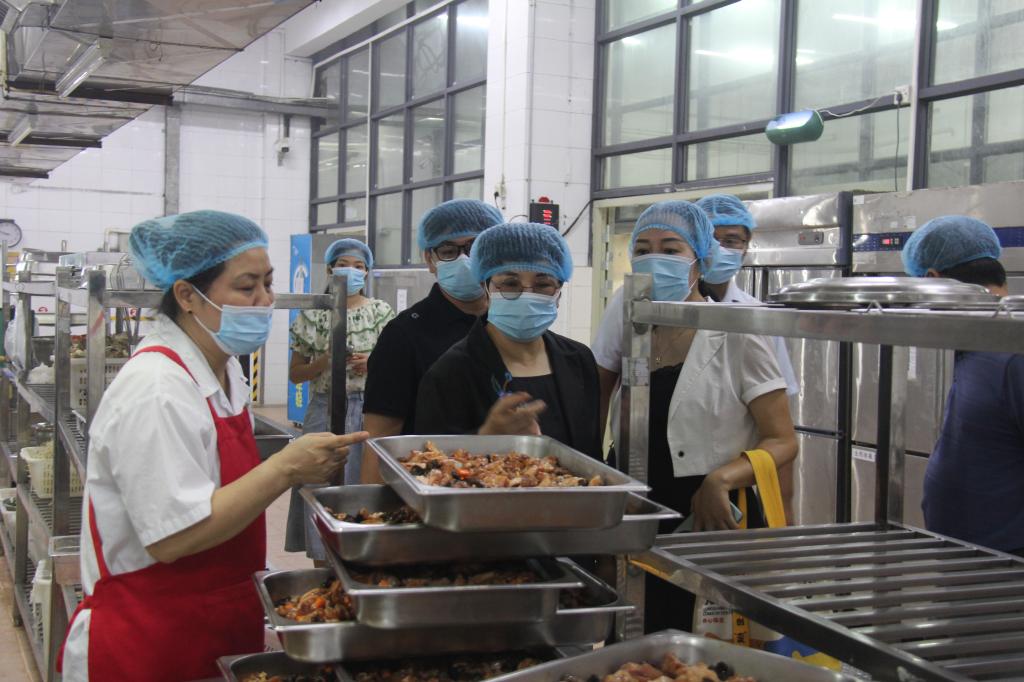 检查组一行首先检查校园防汛重点区域,实地查看了田径场施工情况、广告牌、宣传栏、校园江边防涝及排水管道畅通情况、防汛物资储备量及防汛设施运行状态。在卫健院食堂,司琪书记重点检查了应急电源配备及食材储备情况,听取相关工作人员汇报,并就检查中发现的潜在安全隐患提出具体整改意见。她强调,食堂作为人员密集场所,是台风防御工作的关键点位,必须做到万无一失。要确保应急电源随时可用,同时做好食材储备,保障极端天气下师生的用餐安全和正常供应。